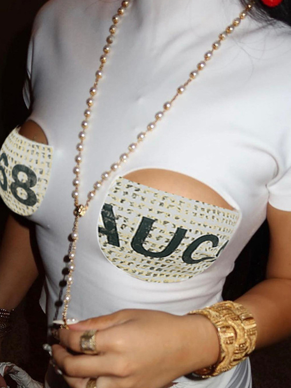 Kurze Ärmel mit Holzperlenkette und Bindeband vorne