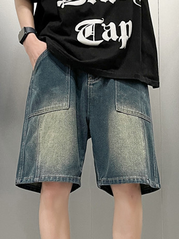 Einfache verwaschene Retro-Shorts für Herren mit weitem Bein