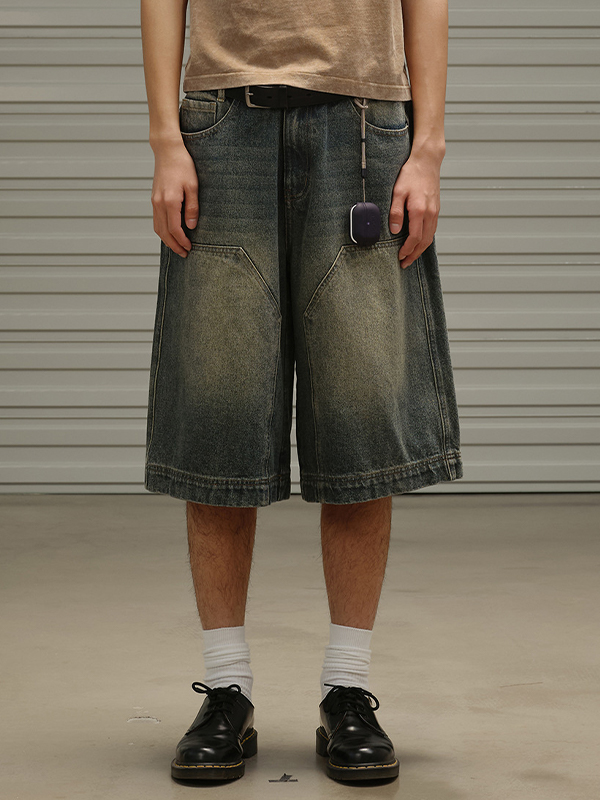 Lockere Retro-Jeansshorts im Used-Look für Herren