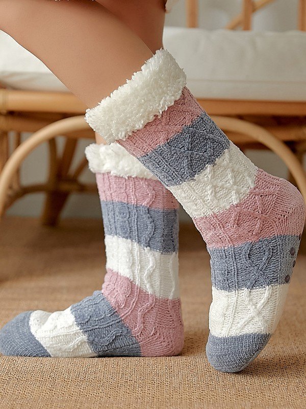Farbblock gestreifte, mit Fleece gefütterte Socken