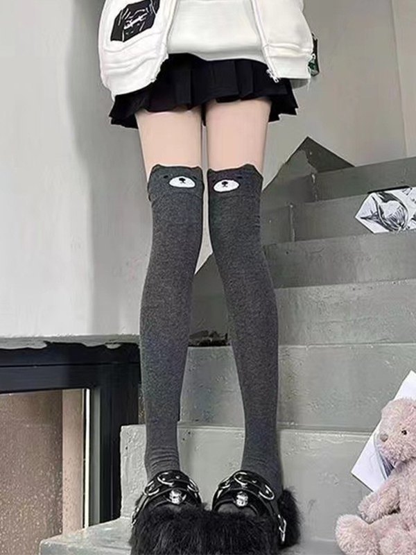 Oberschenkelhohe Socken mit Cartoon-Muster