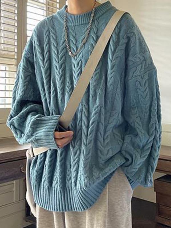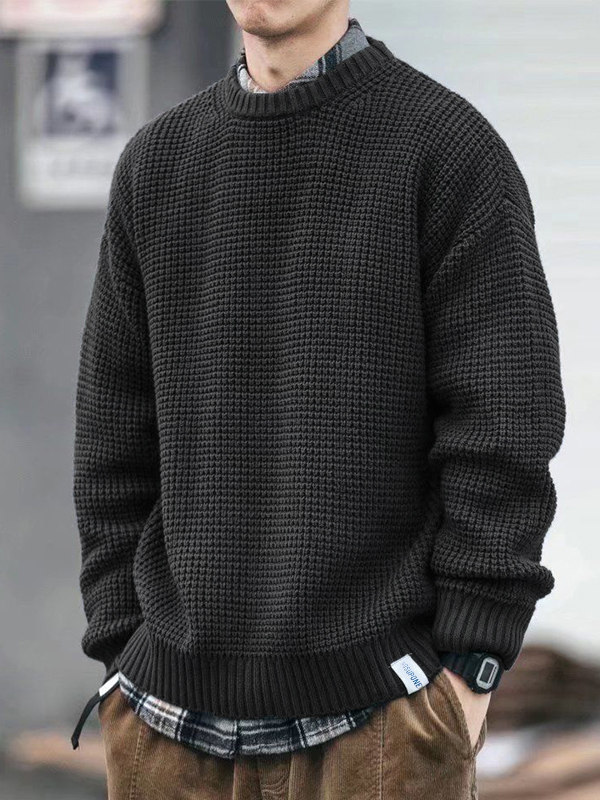 Einfarbiger lockerer Herrenpullover mit Waffelmuster