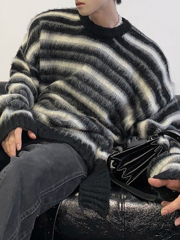 Kontrastgestreifter Fuzzy-Strickpullover für Herren