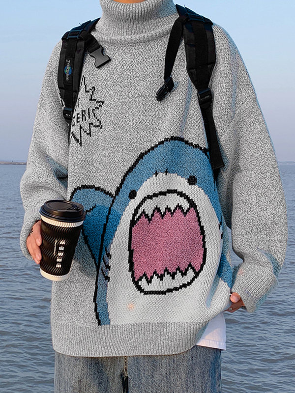 Rollkragen-Pullover mit Cartoon-Haifisch für Herren
