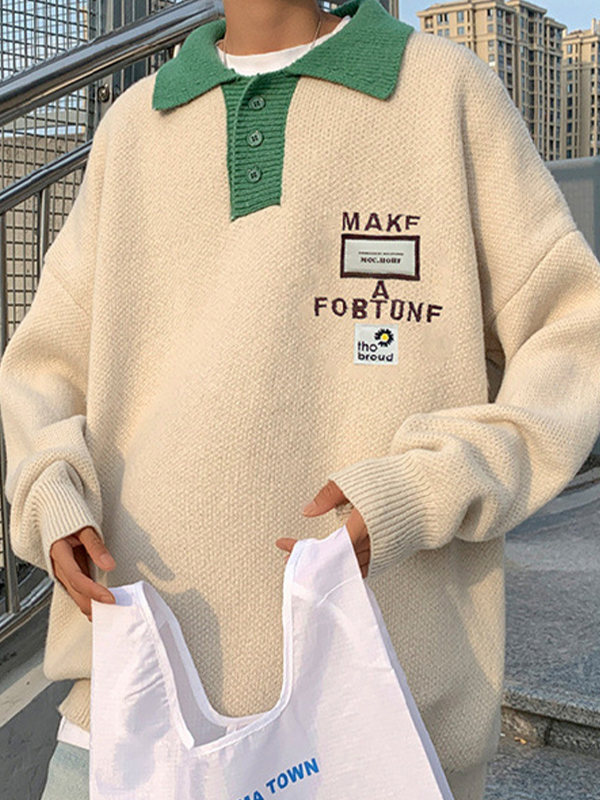 Herren-Strickpullover mit Buchstaben-Stickerei und Beschriftung in Kontrastfarbe