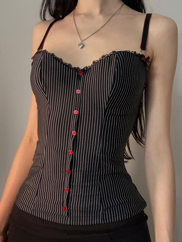 Camisole-Top aus Spitze mit Knöpfen und Streifen