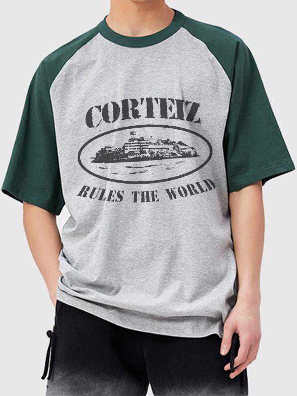 Kurzarm-T-Shirt mit Raglan-Street-Print für Herren