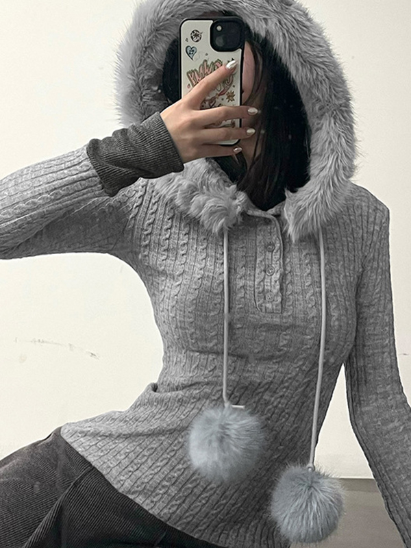 Langärmliger Strick mit Kapuze und Raw Edge in Kontrastfarbe