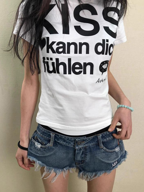 T-Shirt mit kurzen Ärmeln im Retro-Buchstabendruck