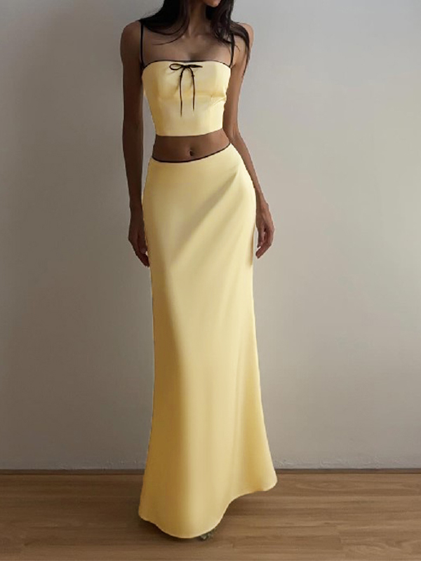 Einfarbiger ärmelloser rückenfreier Zweiteiler