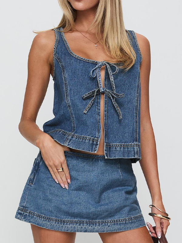Ärmelloser Denim-Zweiteiler mit Schnürung